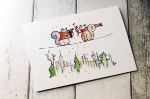 When I came across this squirrel card on Etsy, I was immediately drawn to the sweet playfulness of these two squirrels exchanging gift atop a telephone wire. I love the city skyline with Christmas trees accented with a few snowflakes. 🙂 I had a really hard time choosing which card to feature because I really … Continue reading Etsy Item of the Day: Squirrel Christmas Card