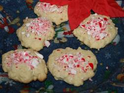 Remove cookie sheet and sprinkle with crushed peppermint candy.