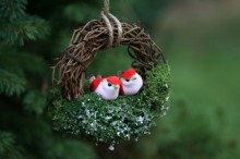 What’s not to love about this bird nest ornament? Two lovebirds sit atop a bed of moss on a wee grapevine wreath—so sweet! Etsy Seller: Cute Craft Decor