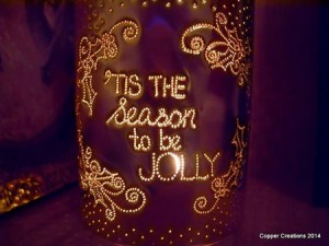 Isn’t this copper lantern gorgeous? So festive and cozy, it would be a wonderful gift for someone who loves luminaries. I really like how the curly swirls perfectly complement the holly as it envelops the phrase “‘Tis the season to be jolly.” Etsy Seller: Copper Creations