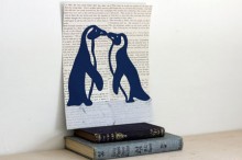 When I saw this, my heart melted a little. These adorable penguins are standing on “ice,” which is handmade tissue paper, with a background of vintage book pages. So cute! Etsy Seller: Fiddleheads For Fiona