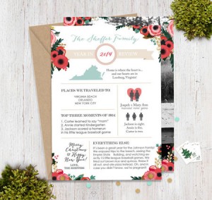 If you’re looking for a modern take on the traditional family Christmas letter, checked out this lovely “year in review” letter. The front side is customized with your family’s information, and the back side includes a family photo. Etsy Seller: Bella Love Letters