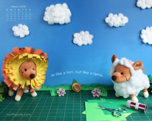 March is here, and there are a couple of things to celebrate—National Craft Month and the arrival of spring! To get the month off to a crafty start, Raymond the reindeer and his pal made their lion and lamb costumes with some help from the elves. We hope this month’s calendar cheers you up as … Continue reading Free Wallpaper: Lions and Lambs and Crafts, Oh My!